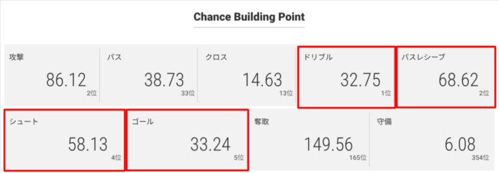 結果としてアシスト1位・ゴール数6位タイと相手守備を翻弄。
