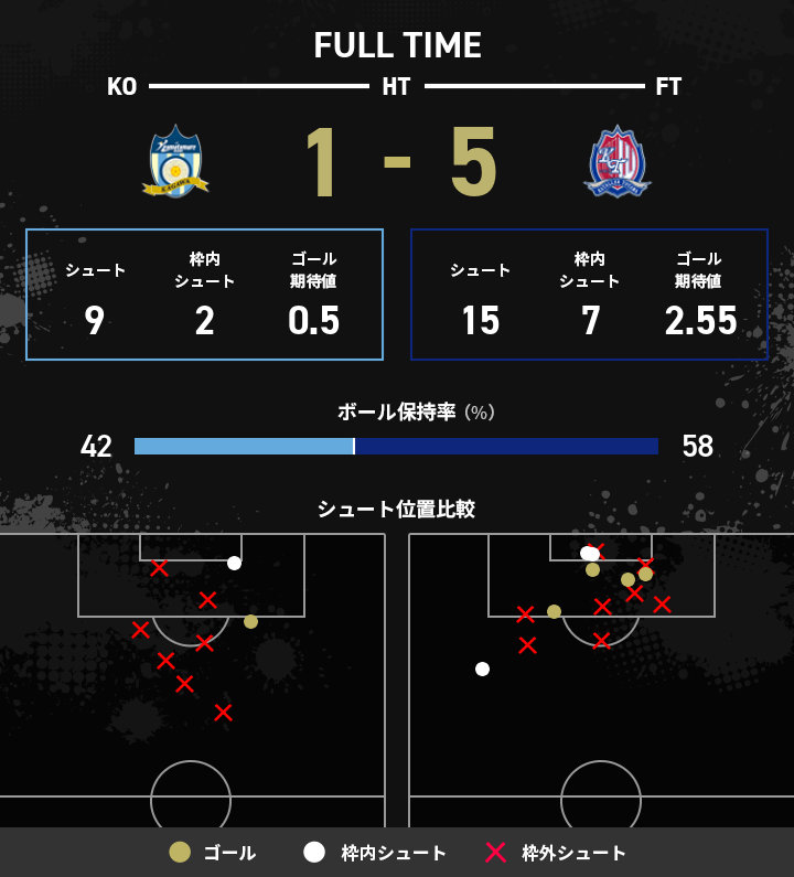 トドメに富山の有望株・亀田選手のゴラッソをお見舞いされ撃沈。