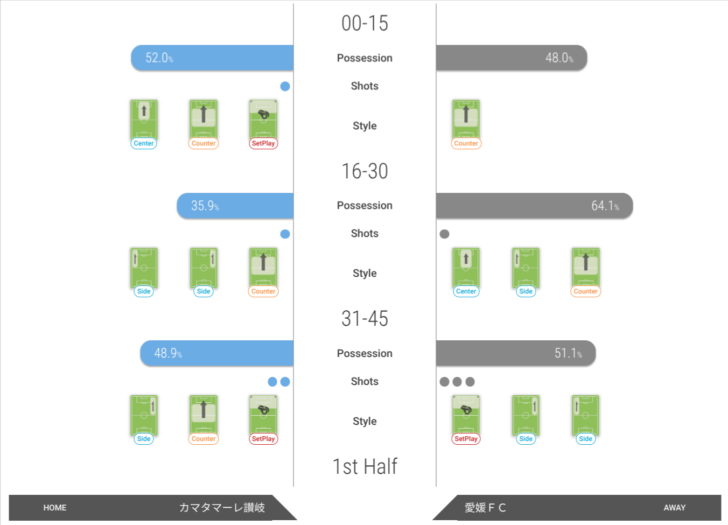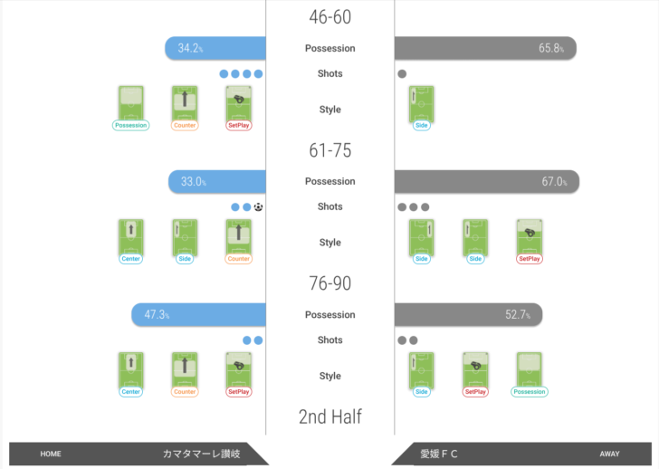 基本的には愛媛がボールを保持しながら試合が流れますが