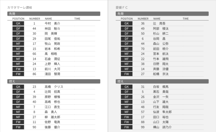 ホームの讃岐は前節ゴールを決めている後藤選手に代わり
