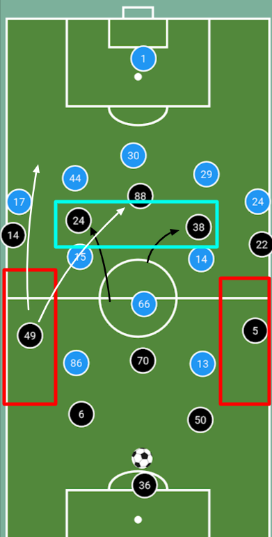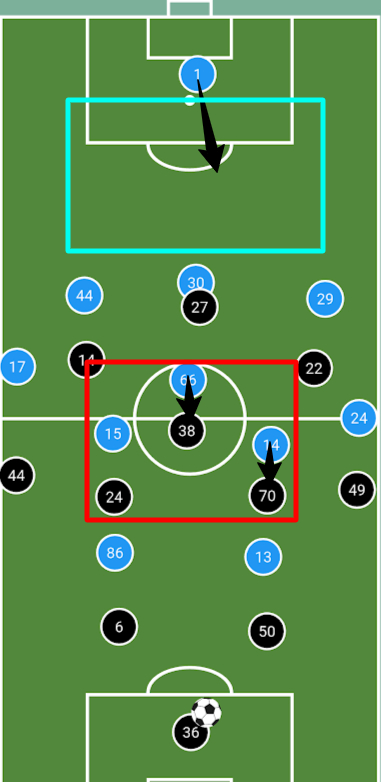セントラルのエリア(赤枠)で激しいプレッシングを仕掛け