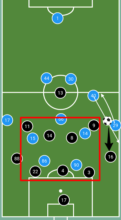 またしても選手交代直後にロングボールで局面を裏返されると