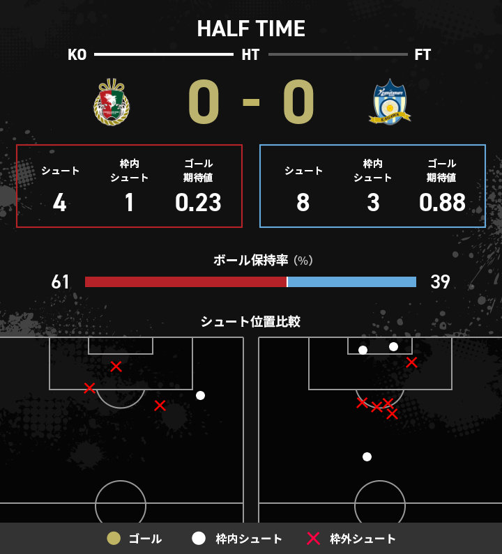 最後まで粘りを見せスコアレスのまま前半が終了。