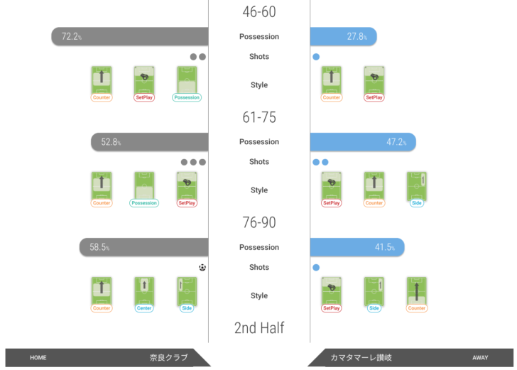 一方の讃岐も前からのプレッシングは勢いを取り戻し