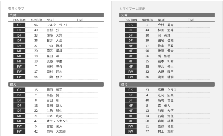 ホームの奈良は元讃岐の後藤選手らをスタメンに抜擢しますが