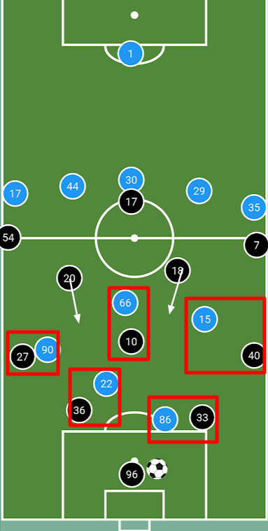 結果的にヴィト選手らがフリーでボールを蹴れることに繋がり