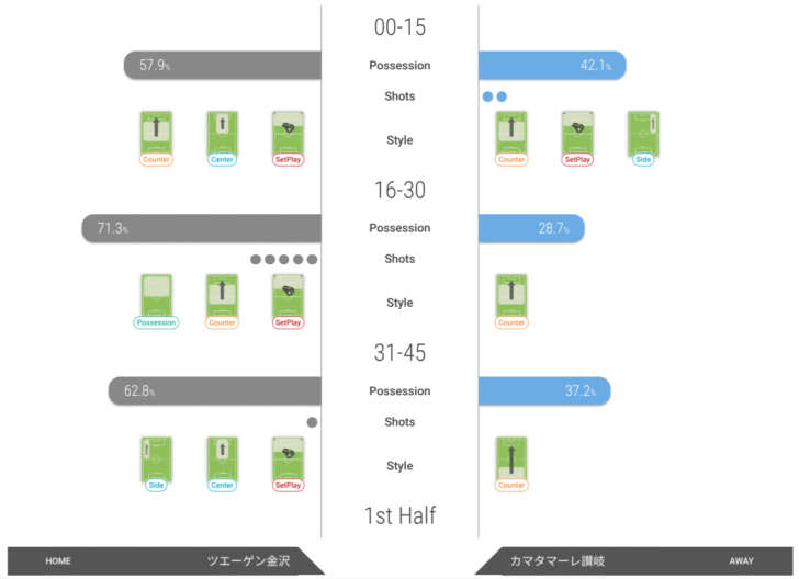 結果としてハーフタイムまでにコーナーキック10本を含む