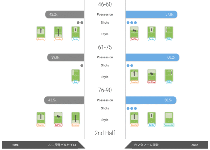 讃岐が3バックにしてきたことで攻撃の難しさは増しますが