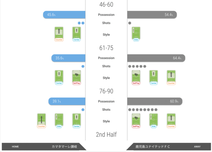 讃岐の出方はここ2試合続いた上位勢との対戦と同様に